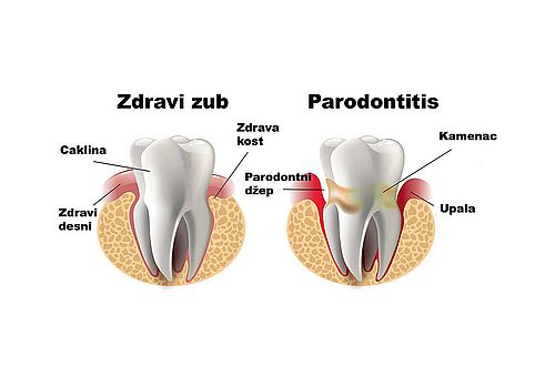 Periodontal disease is caused by various orthodontic irregularities, bad prosthetic restorations, inadequate fillings, dental calculus, improper dental hygiene. The main cause of the periodontal disease is considered to be a dental plaque that leads to gingivitis. Basic interventions in dentistry for treating and preventing diseases of the supporting dental apparatus are: removing the dental calculus with a device, removing the soft plaque with airbrushes, toothbrushes, rubber cups, polishers, and fixing the periodontal pockets with curettes, flap surgery.